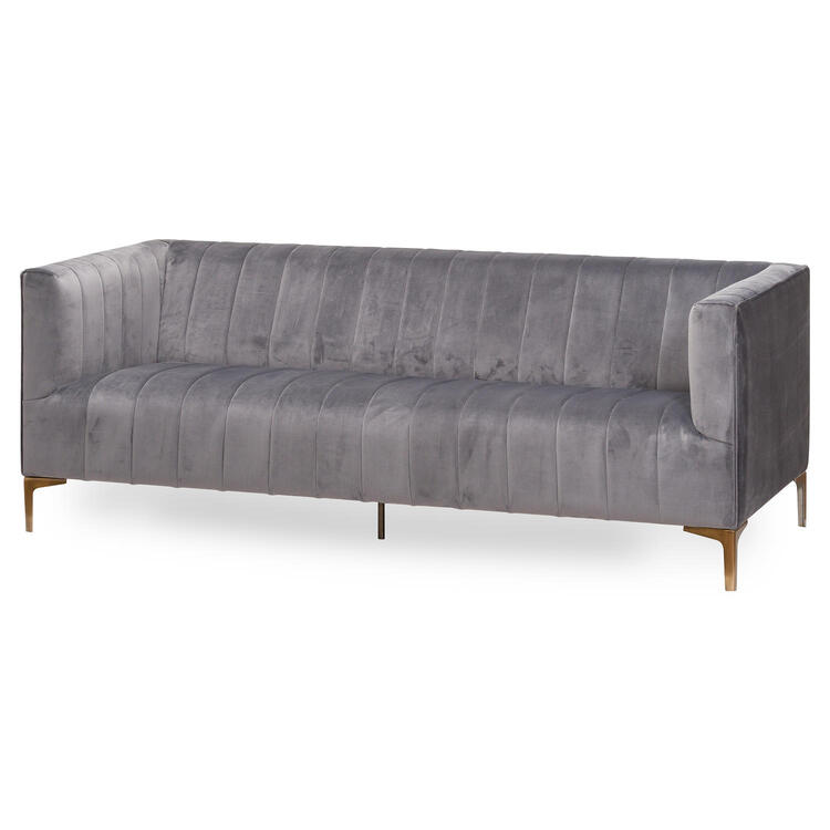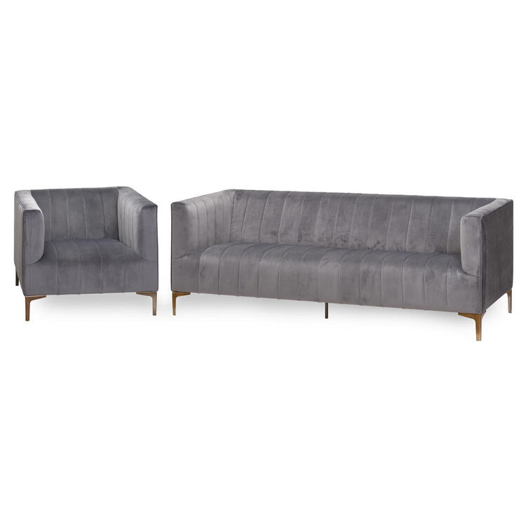 This is the Emperor Grey Velvet 2 seater sofa. Chosen in a calming and timeless grey colour popular throughout the home, this item has hardwearing metal legs to ensure its durability over time. Perfect as a standalone piece or fabulous alongside a matching king size bed (20674) and sofa (20673) for customers with the floor space to create themselves a suite equal to even the most upmarket hotels. The demand for velvet is only growing.