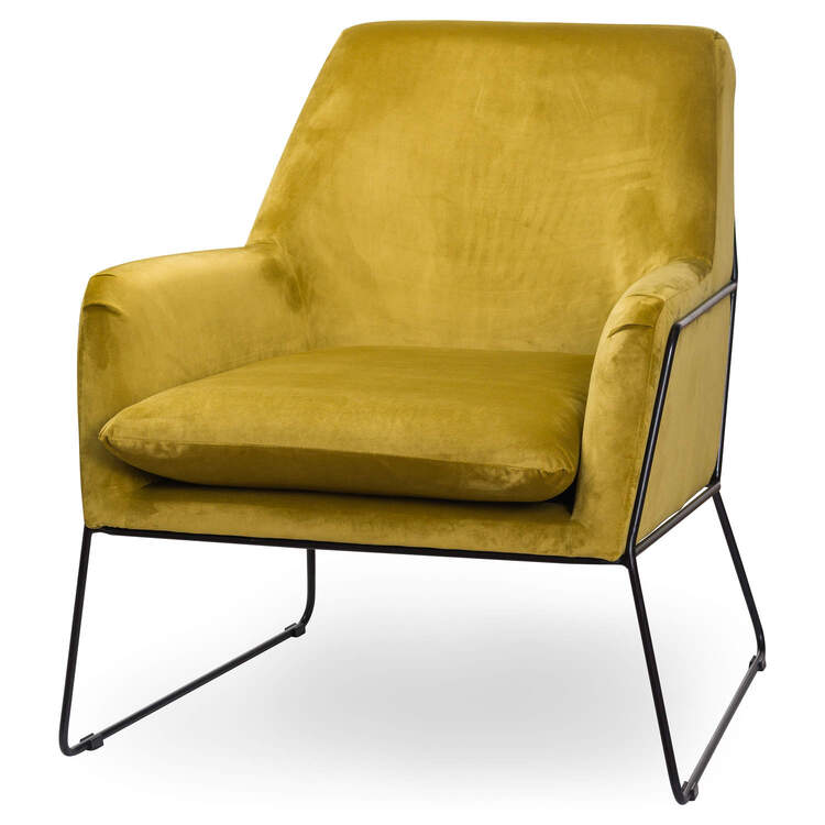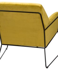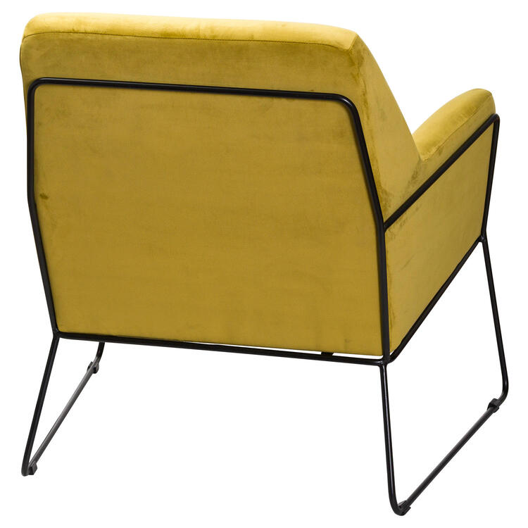 This is the Eva Framed Mustard Velvet Club Chair, a contemporary and slimline chair, sure to appeal as a stylish statement piece that can be used in numerous room types throughout the home. The use of the mustard velvet and black coloured ironwork frame combine to provide an industrial luxe look that is so on-trend this season. A style guaranteed to stand out.