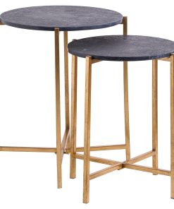 Set Of 2 Gold And Black Marble Tables