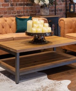 The combination of raw and organic textures of a solid pine body and cast iron accents has been used in the Draftsman Collection. This is the Draftsman Collection Coffee Table which is 45cm high, 120cm wide and 65cm deep and a lower shelf this would make a great addition to any interior space. The combination of wood and gun metal grey features is a key look for on trend interiors which unites function and understated styling to create timeless pieces with a nonchalant design attitude. In keeping with the casual style, the pine body features two tone colouration while the gun metal grey legs, feet and handles bolden the industrial feel. Built to last for years to come, this collection would be a welcome addition in any interior.