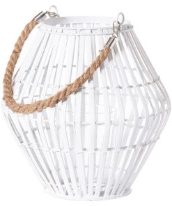White Rattan Large Convex Lantern